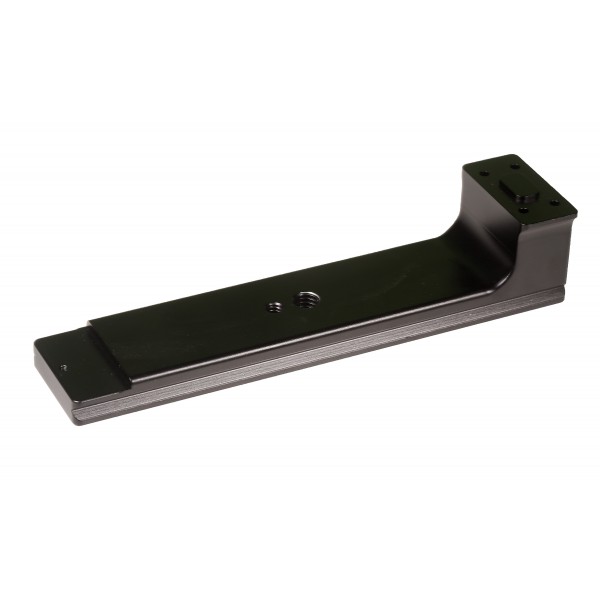 This foot is rather taller and longer than we would normally design, but leave it Nikon to make this a challenge. The new E-series FL lenses have a large diameter lens hood and a neoprene cover which need to be cleared by the foot. The lens foot is also positioned far back on the barrel of the lens making it necessary to extend the foot a full 7" long to balance properly with light camera bodies.